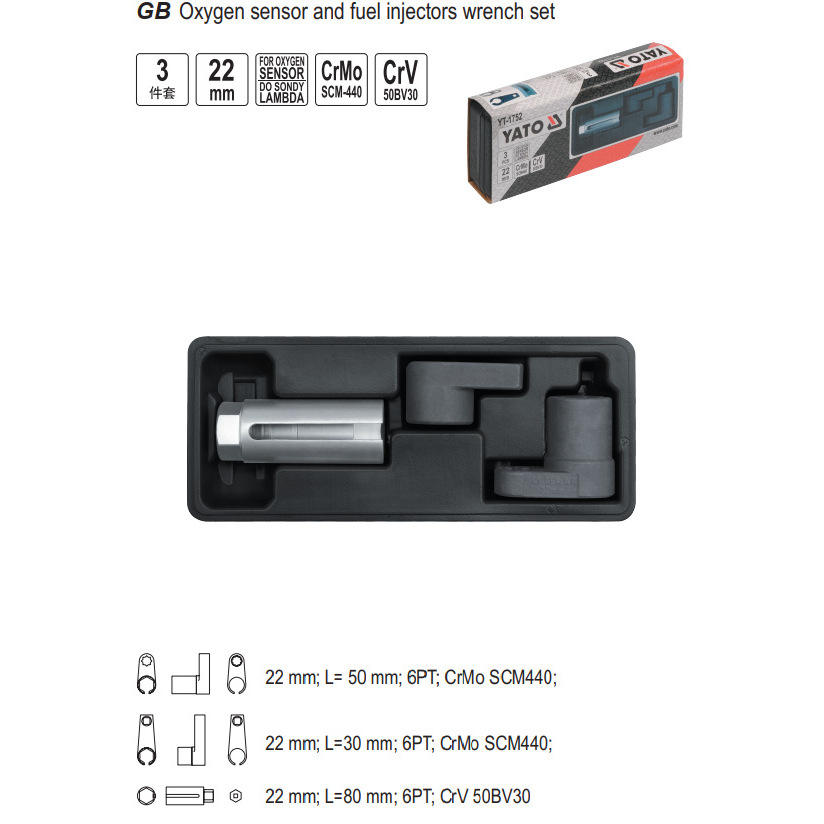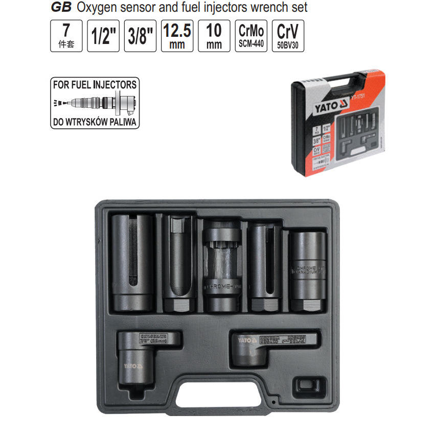 ชุดเครื่องมือเซ็นเซอร์ออกซิเจน YATO ชุดประแจบล็อก 1/2 นิ้ว 3/8 นิ้ว 5 ชิ้น เครื่องมือซ่อมรถยนต์