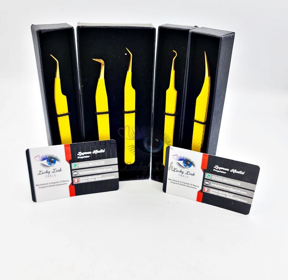 แหนบต่อขนตาสแตนเลส YCT แบรนด์ส่วนตัว ปลายสีทองเหลือง จับเพชร พร้อมโลโก้สั่งทำ อุปกรณ์สำหรับขนตาและคิ้ว