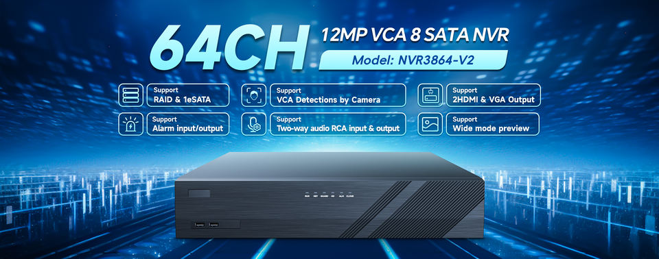 64CH 12MP ycx เครื่องบันทึกวิดีโอ8 SATA H.265 NVR รองรับเครื่องรับสัญญาณ8TB guardviewer รองรับ WD หรือ Seagate หรือ TOSHIBA harddisk