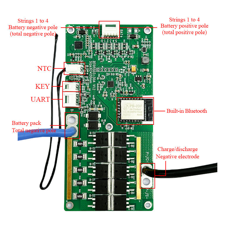 YDE 12V ชุดควบคุมแบตเตอรี่อัจฉริยะแบบแอปพลิเคชัน พร้อมแผงวงจร PCBA ในตัว เชื่อมต่อไร้สายผ่านบลูทูธ ตรวจสอบสถานะแบบเรียลไทม์ สำหรับแบตเตอรี่ LiFePO4 3S/4S/5S 30A-60A 1