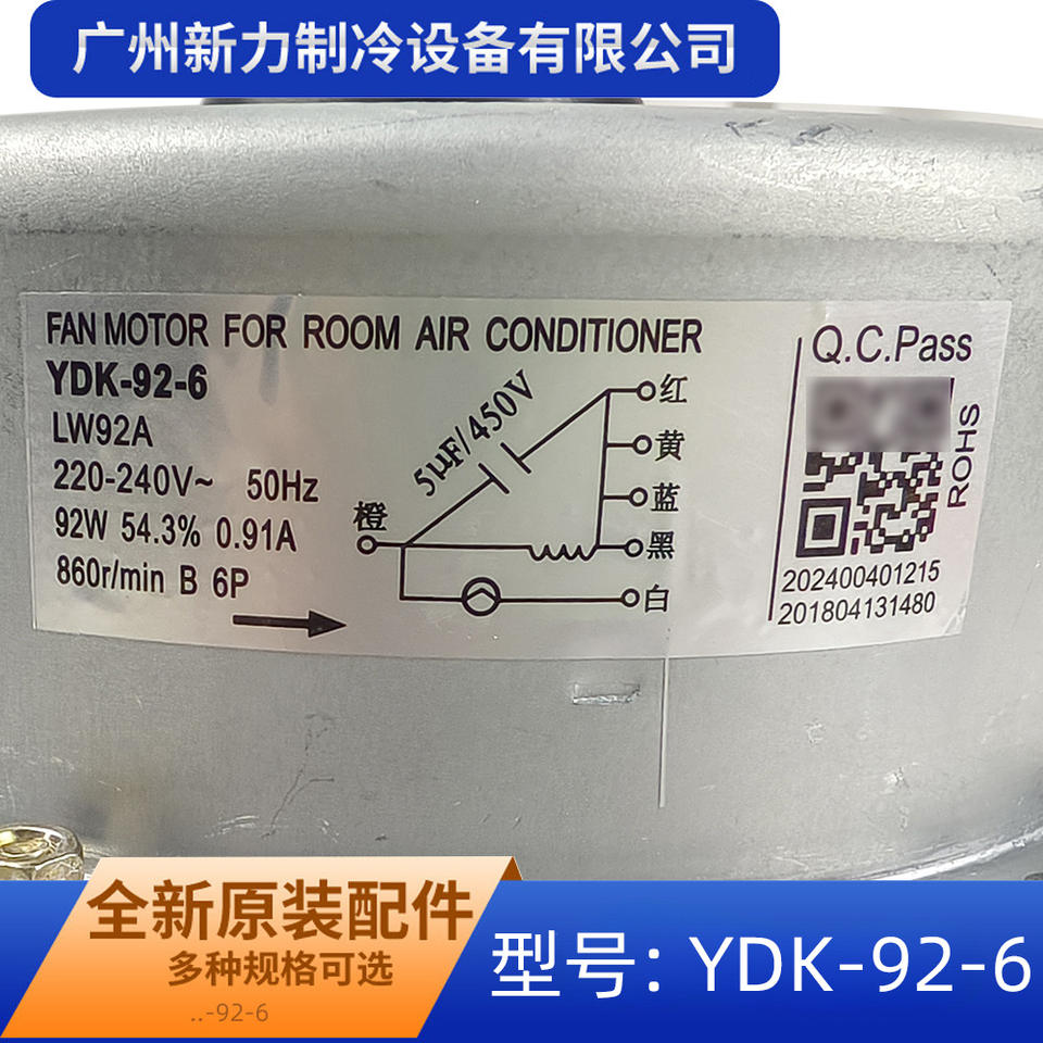 YDK-92-6 มอเตอร์พัดลมสำหรับเครื่องปรับอากาศในห้อง 220-240V 50Hz อะไหล่ทดแทนแบบอะซิงโครนัสเฟสเดียว LW92A