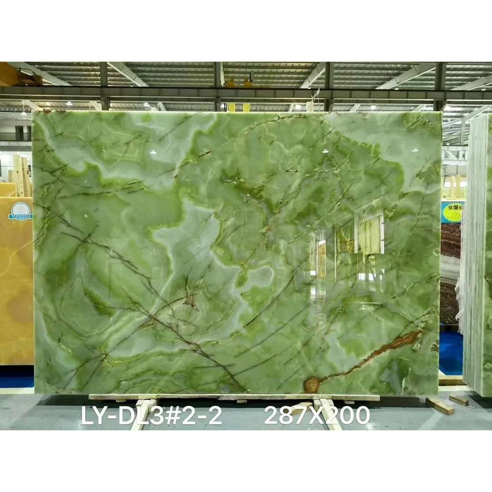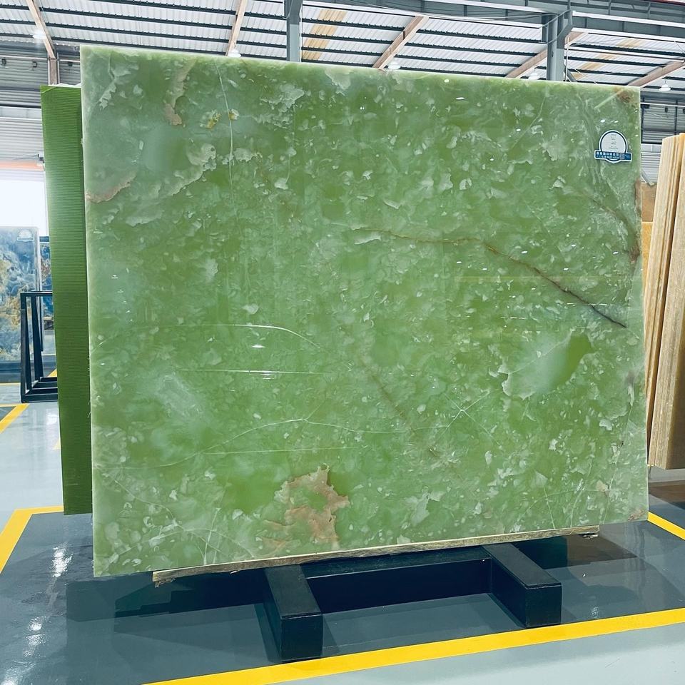 หินธรรมชาติลดราคาพิเศษ หินอ่อนโปร่งแสงโอนิกซ์สีเขียวแบบเปิดหน้า
