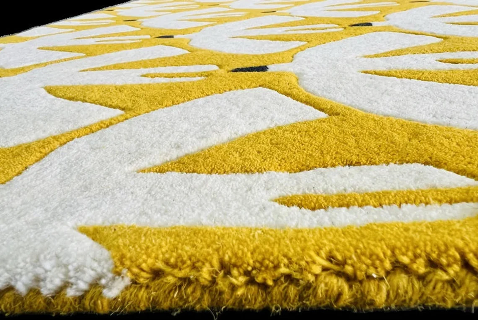 พรมพู่นกแบบพรีเมี่ยมขนแกะทอมือสีเหลืองสีขาววินเทจสไตล์โบฮีเมียนสไตล์โบโฮที่ทันสมัย