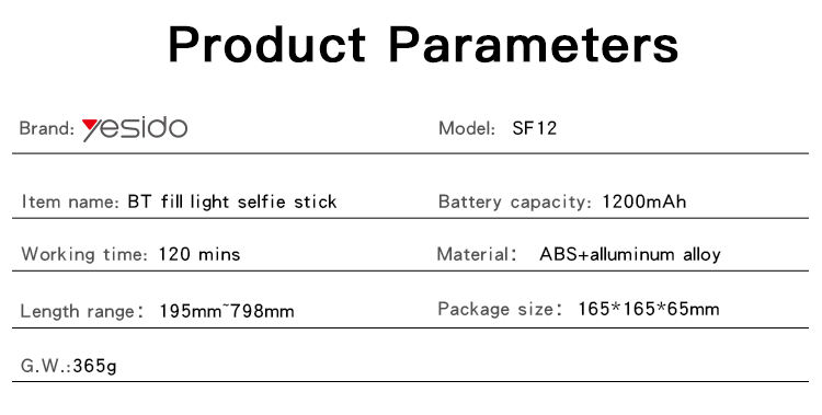 YESIDO ไม้เซลฟี่หมุนได้360องศา,ไม้เซลฟี่สำหรับถ่ายไลฟ์สตรีมไม้เซลฟี่ไร้สายพร้อมไฟวงแหวน