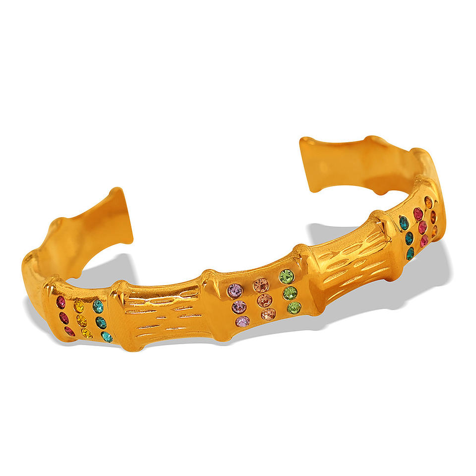 กำไลข้อมือเปิดรูปทรงไม้ไผ่ ประดับเพชรซิคอน ดีไซน์สร้างสรรค์ ชุบทอง 18k บนสแตนเลสสตีล รุ่น YF3717