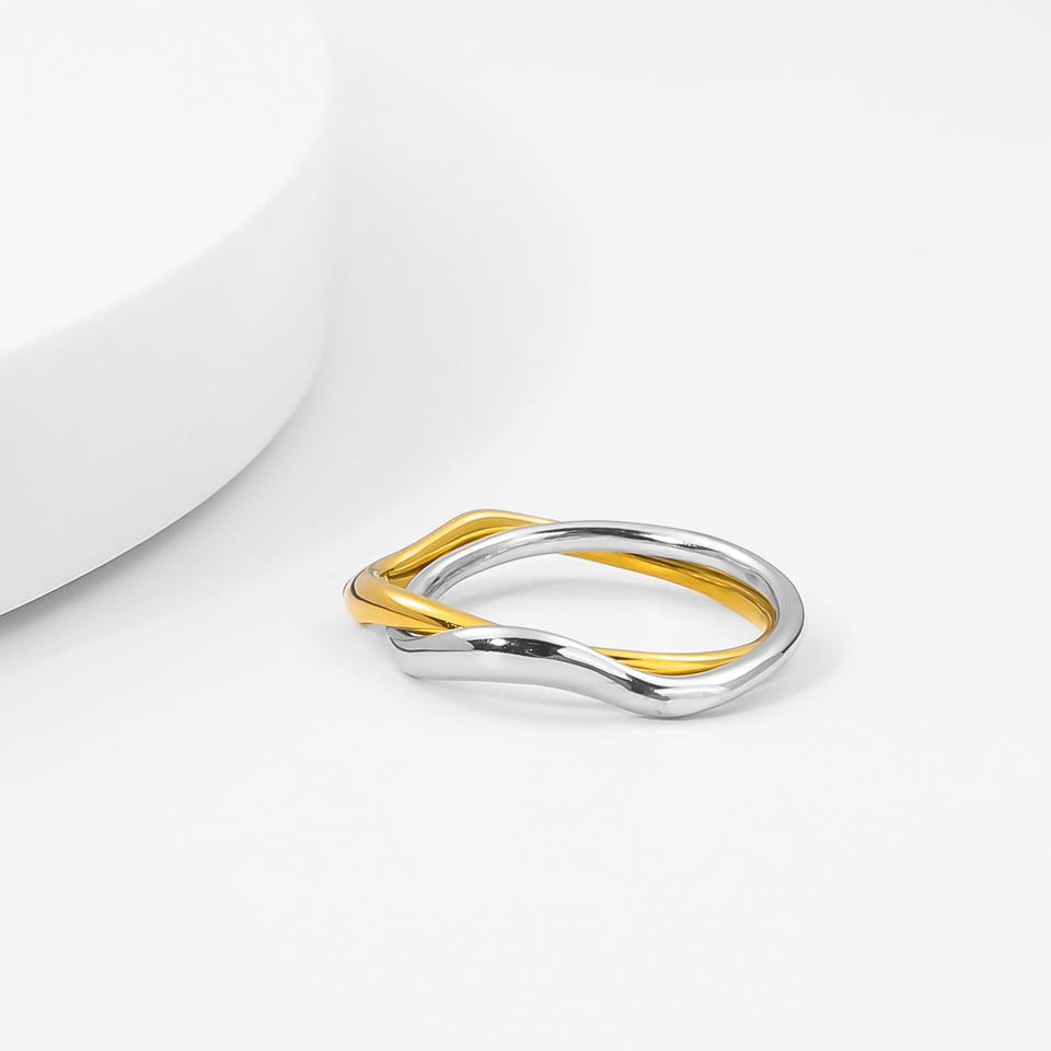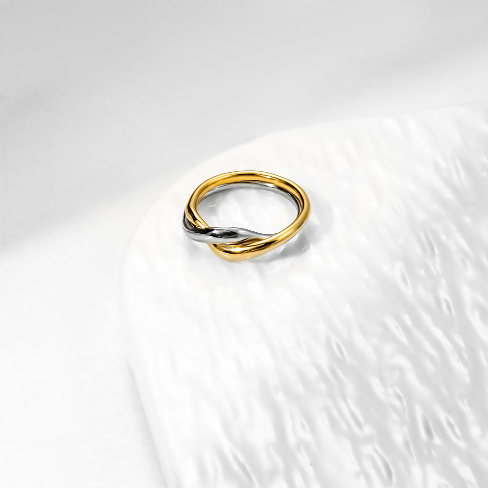 แหวนคู่สแตนเลสสตีล YF6252 ชุบทอง 18k สองสี ดีไซน์เรียบง่าย วงแหวนคู่แบบพันเกลียว