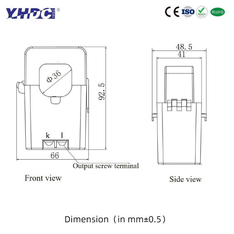 SCT036TS yhdc (36มม.) เอาต์พุต5A ตัวแปลงกระแสแยกแกน0.5% ความแม่นยำของ100-600A อินพุต CE ROHS ISO