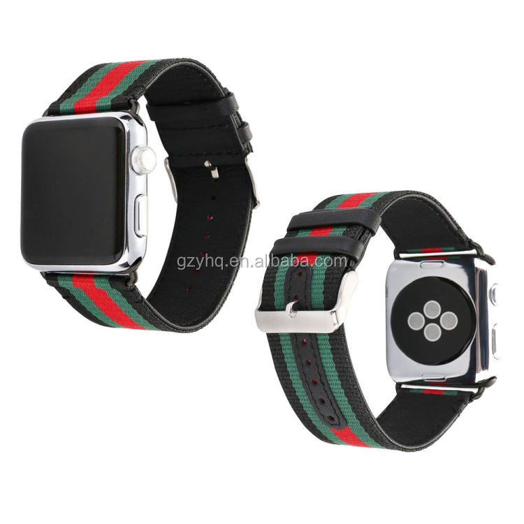 สายนาฬิกาหนังแท้ YHQ พร้อมสายไนลอน แบบเปลี่ยนได้ พร้อมตัวล็อคโลหะสแตนเลส สำหรับ Apple Watch Series 6 7