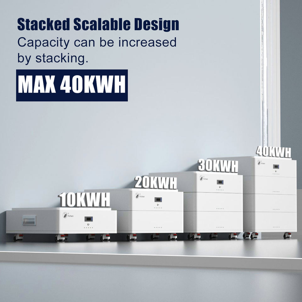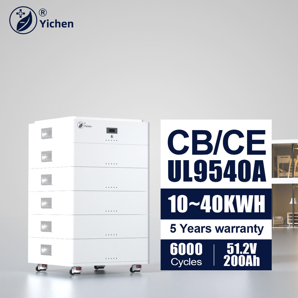 Yichen แบตเตอรี่ลิเธียม40KWh 30KWh 20KWh 10KWh CE CB 51.2โวลต์200Ah วางซ้อนกันได้ LiFePO4ที่บ้าน IP65แบตเตอรี่พลังงานแสงอาทิตย์สามารถ