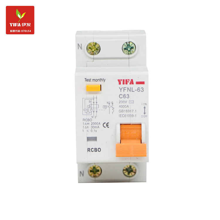 Yifa เบรกเกอร์วงจร63A ประเภทแม่เหล็กไฟฟ้าและอิเล็กทรอนิกส์6kA ชนิด A 30mA rccb elcb RCBO RCD