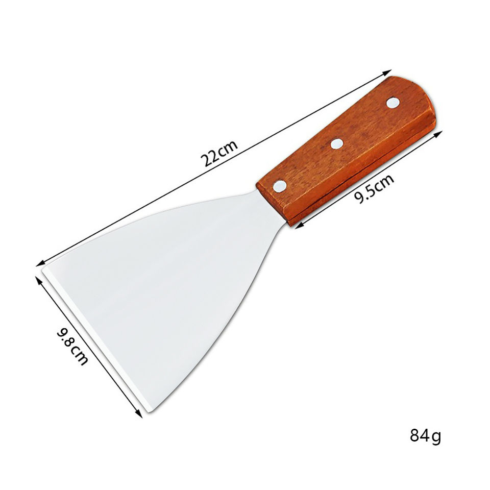 Yinhao มีด้ามจับทำจากไม้สำหรับทำอาหารบาร์บิคิวทำจากสเตนเลสมีขอบเอียงตะหลิวย่าง