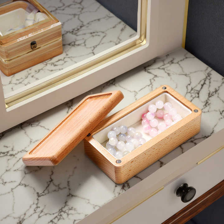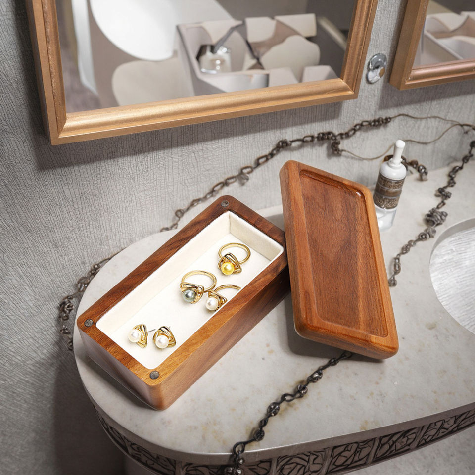 Yishang กล่องจัดเก็บเครื่องประดับวอลนัททรงสี่เหลี่ยมขนาดเล็กแบบข้ามพรมแดนกล่องเก็บของสำหรับใส่ต่างหูสร้อยคอเครื่องประดับ
