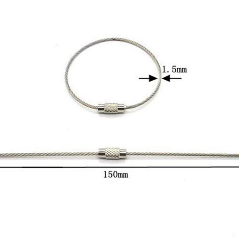 พวงกุญแจลวดสแตนเลส YIWANG สีเงิน ขนาด 150 มม. พร้อมห่วงล็อคแบบเกลียว