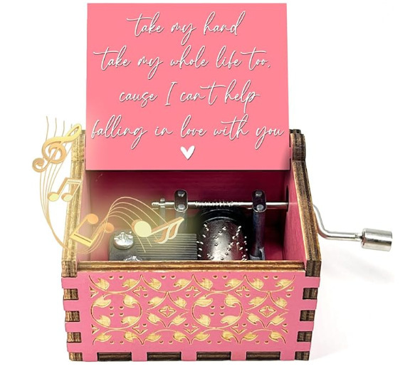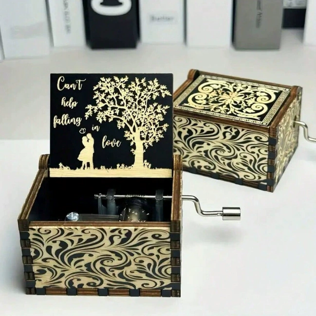 กล่องดนตรีไม้หมุนมือ YIYU 8 เสียง แบบคลาสสิก สลักลายสี่เหลี่ยมผืนผ้า สไตล์ย้อนยุค 30 ปี ของขวัญวาเลนไทน์ทำมือ
