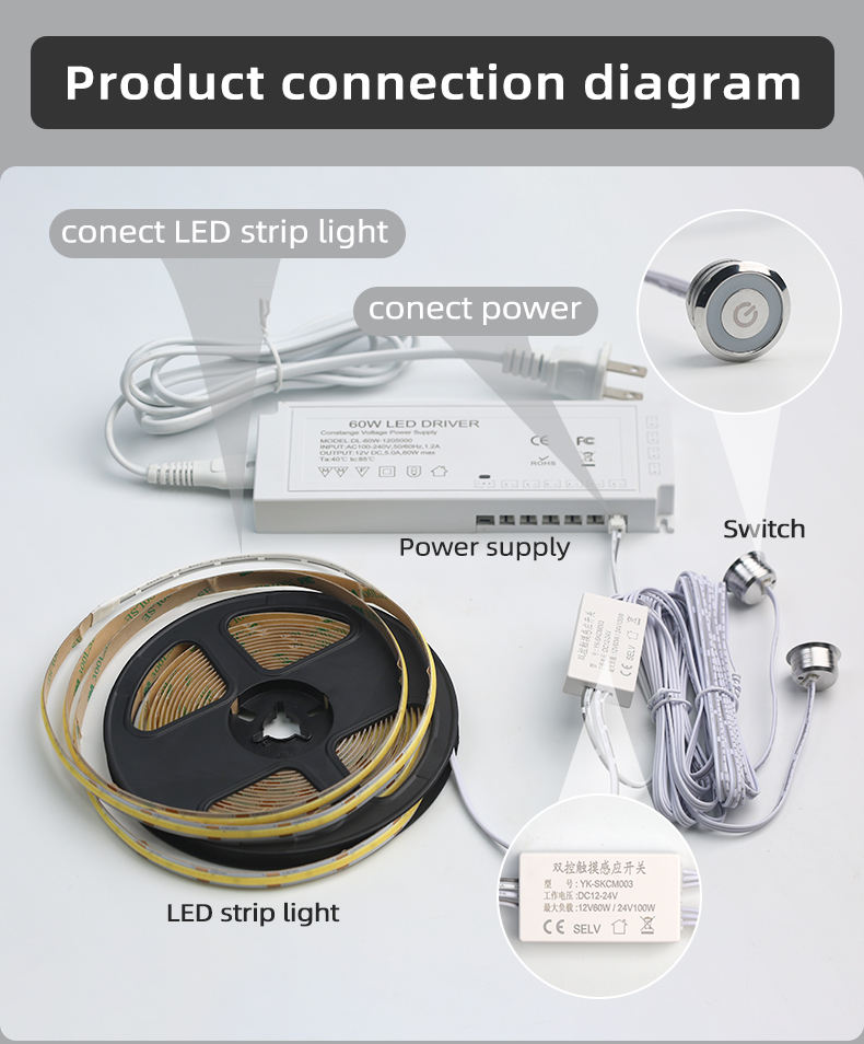 สวิตช์ไฟตู้เสื้อผ้าแบบถอดได้สวิตช์ DC12/24V แบบ YK-SSCX001เองหรี่ไฟได้พร้อมสวิตช์ควบคุมแบบเหนี่ยวนำที่ถอดออกได้สวิตช์กวาดมือ