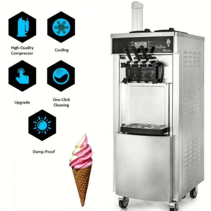 เครื่องทำไอศกรีมแบบนิ่ม20-28L/ชม. ทำจากสเตนเลสเพื่อการค้าแบบ YKF-8228H มี2 + 1รสชาติ