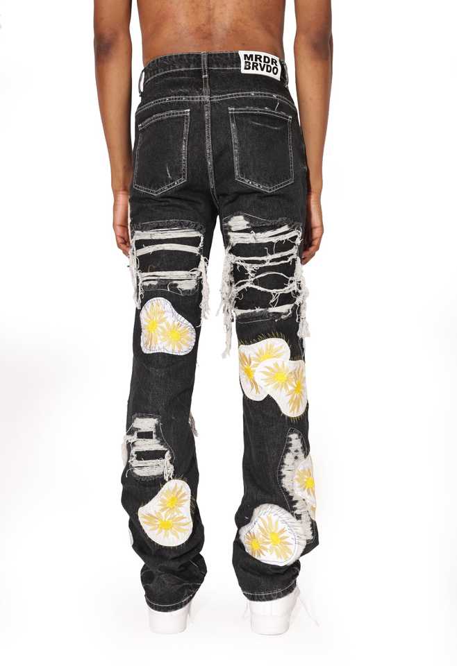 Ykmozi กางเกงยีนส์ทรงตรงสไตล์วินเทจสำหรับผู้ชายทรงหลวมใส่ได้พอดีกับผ้าปักและเย็บปะติด