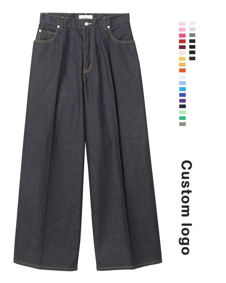 Ykmozi กางเกงยีนส์ขาตรงกว้างสำหรับผู้ชายกางเกงยีนส์ทรงหลวมสองด้านผลิตตามสั่ง