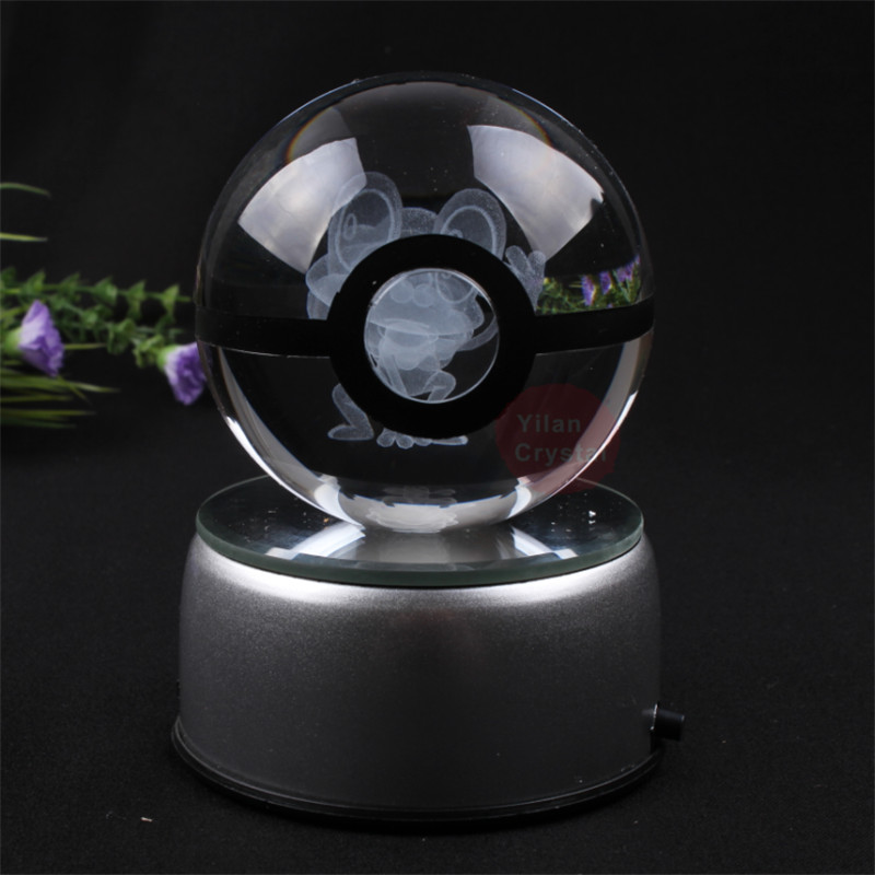 YL-B047 Wholesale Hot Sale 50-80mm 3D Laser Engraving Crystal Pokeball Froakie Ball With LED Light for Kids Gift