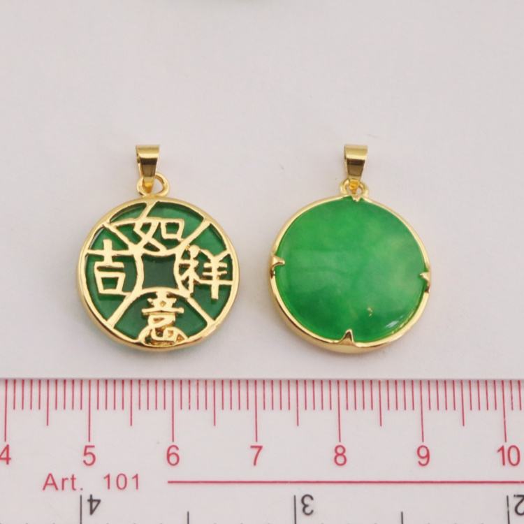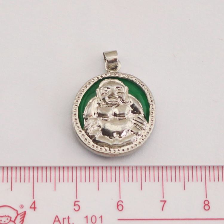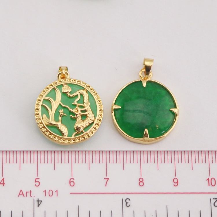 จี้หยกทรงแบนกลมสีเขียวลายมังกรฟีนิกซ์พระพุทธรูป ดีไซน์แบบจีน รุ่น YL0028 เครื่องรางนำโชค