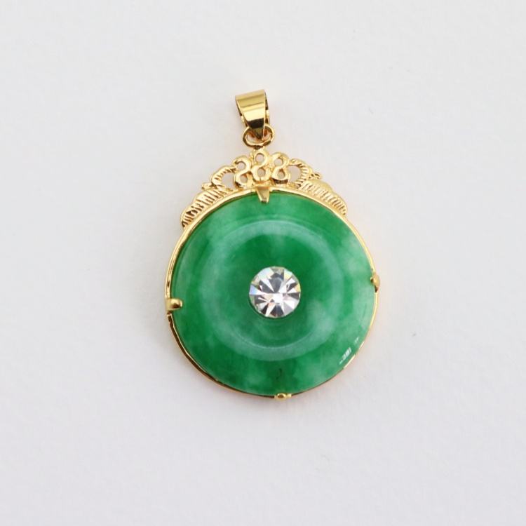 YL0078สไตล์จีน18K ชุบทองทองเหลืองกลมหยกกวนอิมจี้พระพุทธรูปเครื่องประดับเครื่องรางทางจิตวิญญาณสำหรับผู้ชายผู้หญิง
