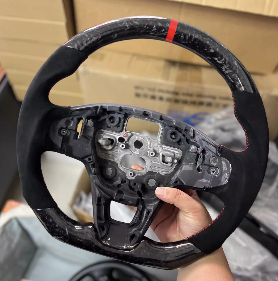 พวงมาลัยคาร์บอนไฟเบอร์แบบฟอร์จสั่งทำพิเศษจาก YLC สำหรับรถฟอร์ดมัสแตง จีที ปี 2024 และฟอร์ดมัสแตง ปี 2023