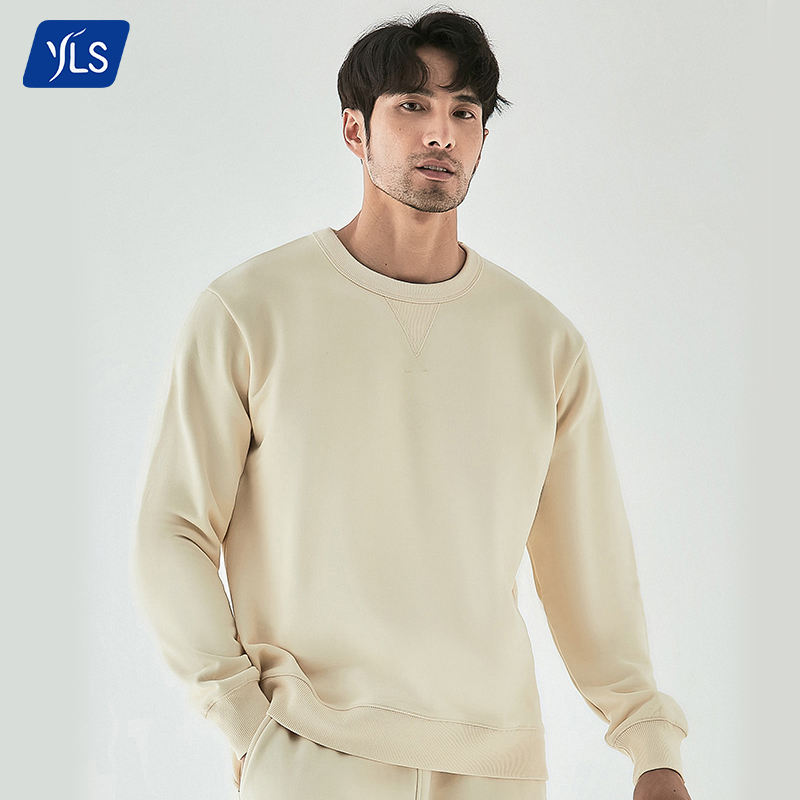 Yls RTS เสื้อสเวตเชิ้ตเข้ารูปแขนยาวสำหรับผู้ชายเสื้อสเวตเชิ้ตเข้ารูปพิมพ์ลายหน้าจอได้ตามที่ต้องการเสื้อยืดคอกลมเข้ารูปผ้าฝ้าย85กรัม