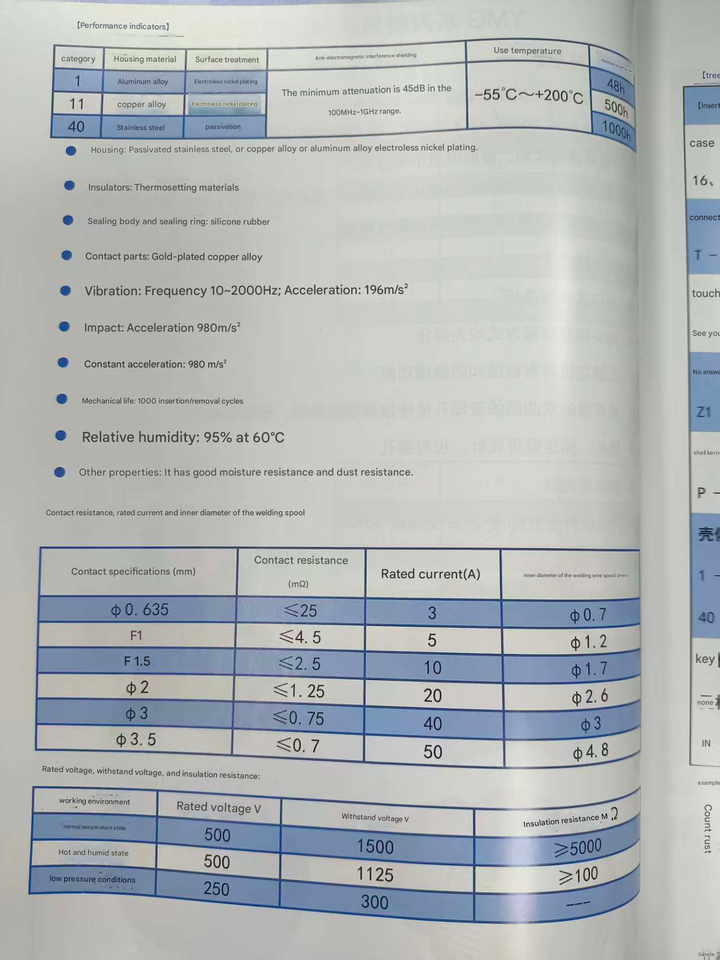 ขั้วต่อไฟฟ้าแบบวงกลมชนิดเบโยนต์ ซีรีส์ YMG สำหรับงานทางทะเล ทนทานต่อการกัดกร่อน ความต้านทานต่ำ ป้องกันน้ำฝน 16 แกน 1000