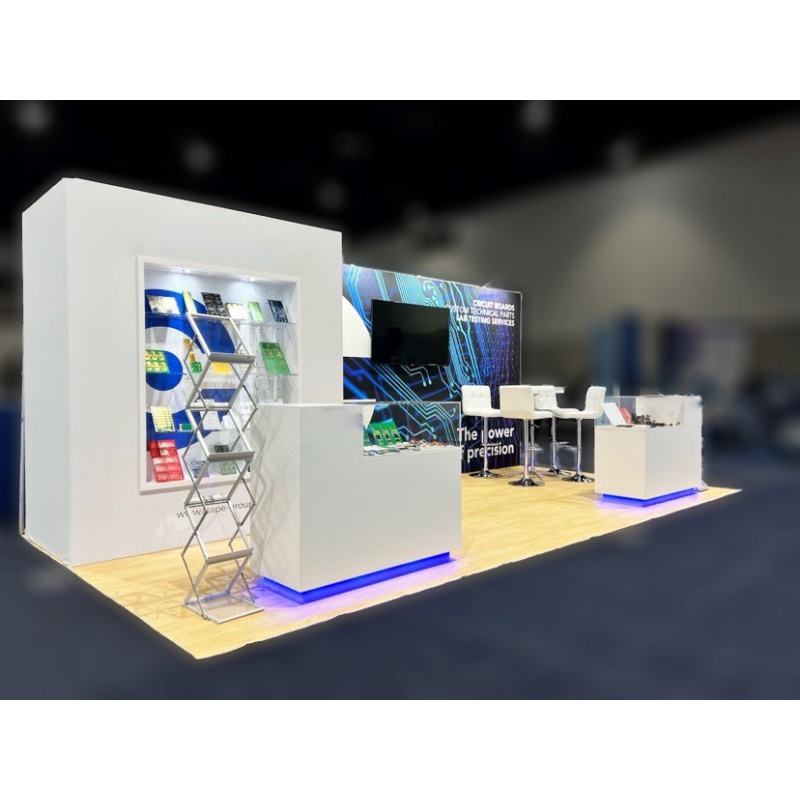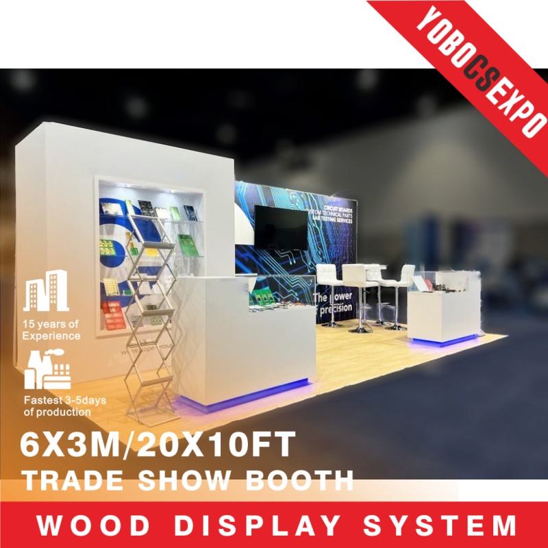บูธแสดงสินค้า YOBOCS แบบกำหนดเองได้ น้ำหนักเบา สำหรับ 2 คน ประกอบง่าย ใช้ซ้ำได้ ทนทาน ป้องกันไฟไหม้ บูธไม้สำเร็จรูป