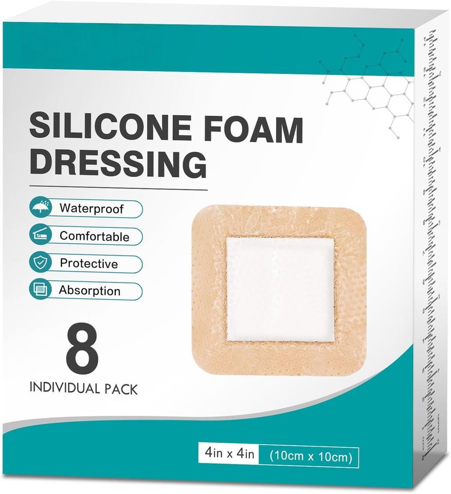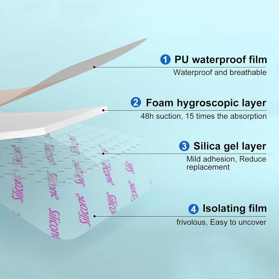 YOJO แผ่นปิดแผลซิลิโคนโฟมแบบซุปเปอร์ซึมซับ กันน้ำ ขอบนุ่ม ขนาด 4x4 นิ้ว พร้อมกาวซิลิโคน ใช้งานได้นาน 3 ปี