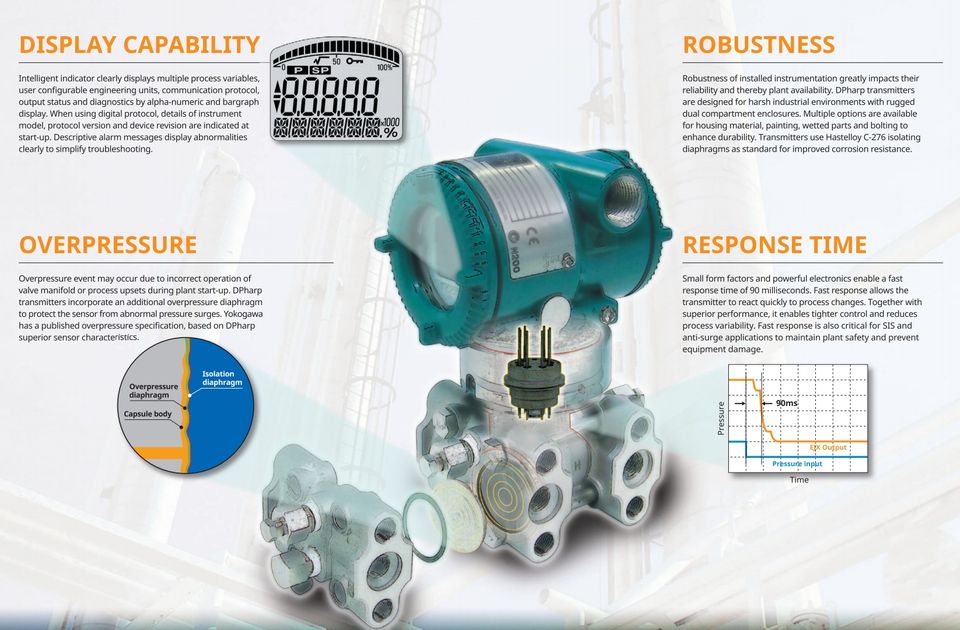 เครื่องส่งสัญญาณวัดระดับความดันอัจฉริยะ YOKOGAWA สำหรับวัดแรงดันอากาศ ก๊าซ น้ำมัน ของเหลว น้ำ เครื่องส่งสัญญาณวัดแรงดันแบบดิฟเฟอเรนเชียล