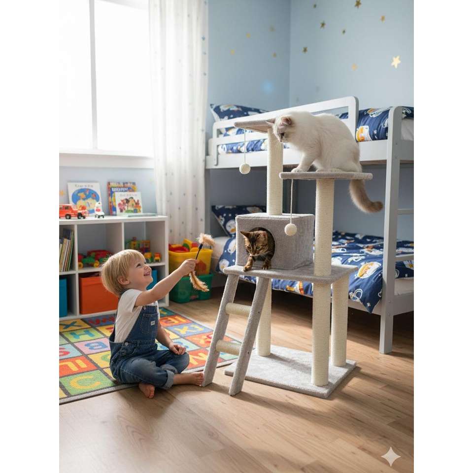 YOMMY ทาวเวอร์แมวออลอินวันแบบหลายระดับ สำหรับข่วน ปีน และพักผ่อน