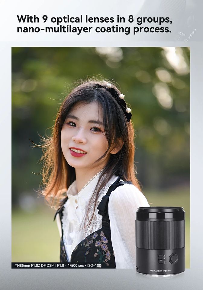 Yongnuo YN 1.8Z 85มม. Df DSM เต็มเฟรมออโต้โฟกัสเลนส์รูรับแสงขนาดใหญ่สำหรับเลนส์ NIKO สำหรับกล้อง Nikon 85มม.