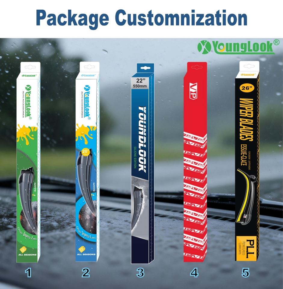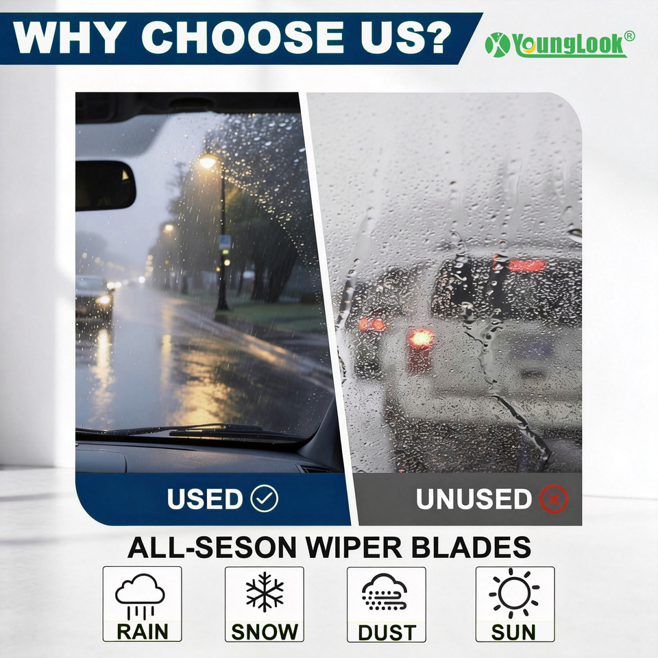 ใบปัดน้ำฝนแบบไฮบริด YOUNGLOOK รุ่น Universal พร้อมคานแบน 3 ตอน สำหรับรถโรดสเตอร์ ใช้ได้กับฝนหรือหิมะ ได้รับการรับรองมาตรฐาน SAE J327 รุ่น YL-17C