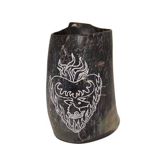 แก้วมักลายควายฮอร์นไวกิ้งทำด้วยมือของคุณนอร์สแก้วมักดีไซน์ใหม่สำหรับดื่มเบียร์และกาแฟแบบธรรมชาติ