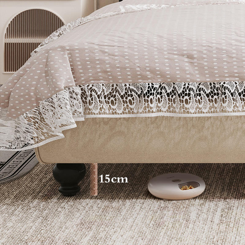 เตียงควีนไซส์ ยี่ห้อ YOUTAI รุ่น French Cream Style ผิวสัมผัสกำมะหยี่ นุ่มสบาย บุด้วยฟองน้ำ โครงไม้ หัวเตียงทรงรุ้ง