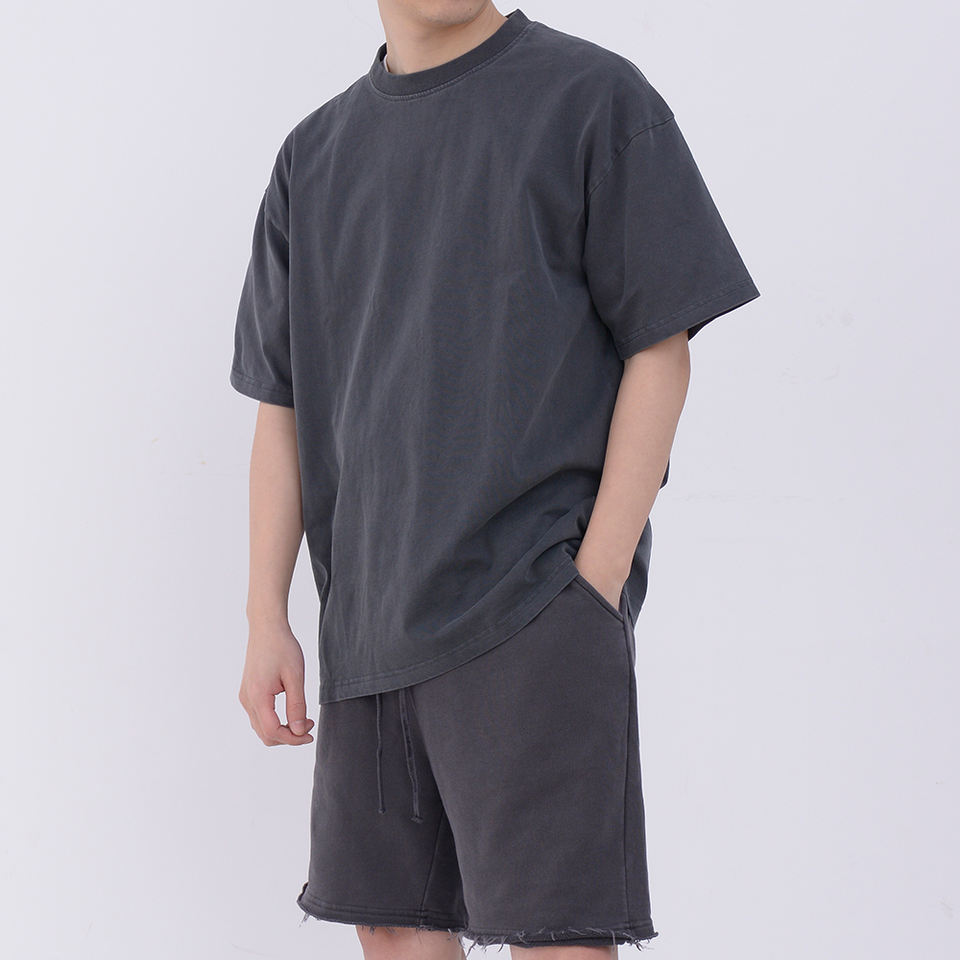 เสื้อยืดวินเทจผู้ชายทรงโอเวอร์ไซส์ผ้าคอตตอนฟอกย้อมสีแบบแอซิดวอช ยี่ห้อ YQ Wholesale สามารถปรับแต่งได้ตามต้องการ