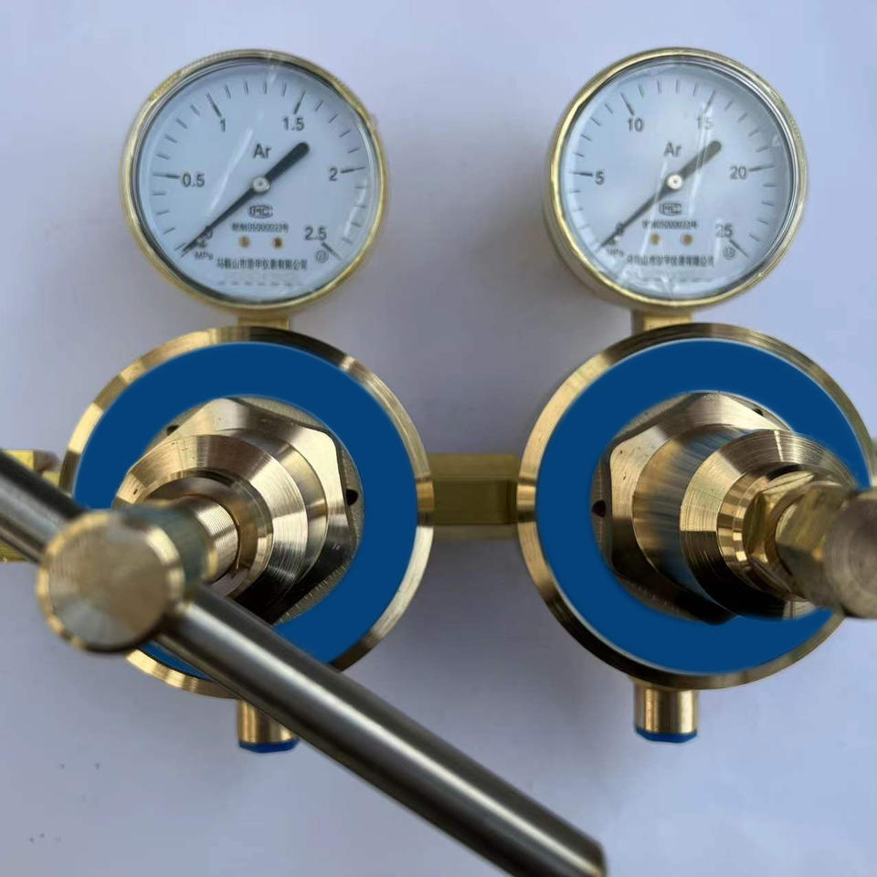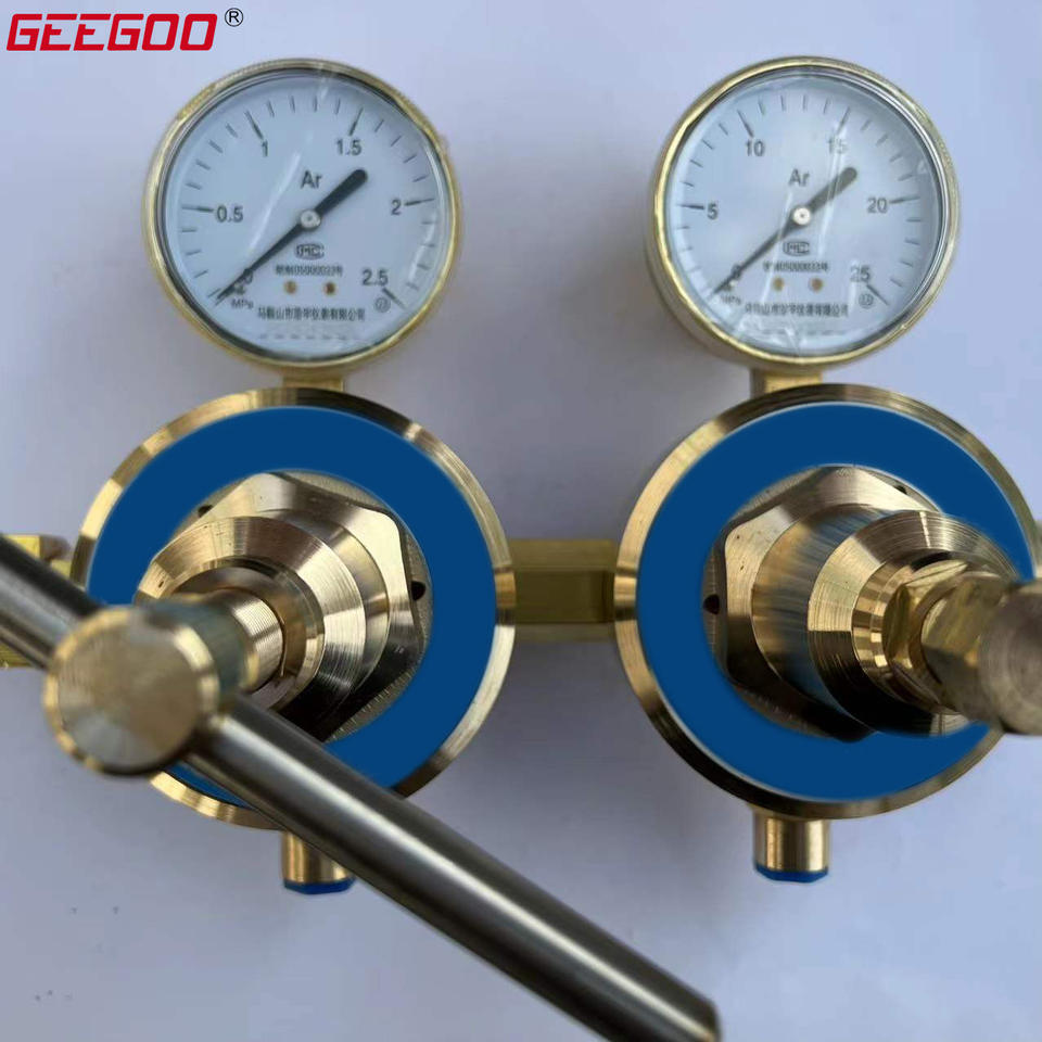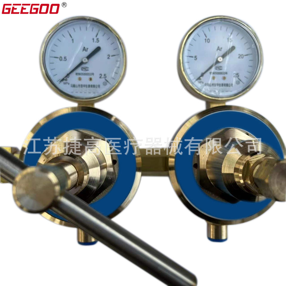 ข้อต่อทางเข้าและทางออกแก๊สอาร์กอนแบบสองขั้นตอนพร้อมเกจวัดคู่