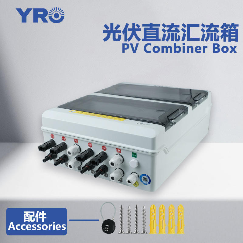 กล่องรวมสายไฟฟ้าโซลาร์เซลล์ YRO แบบ 4 เข้า 2 ออก 1000V DC พร้อมระบบป้องกันไฟกระชาก ติดผนัง สำหรับระบบโซลาร์เซลล์