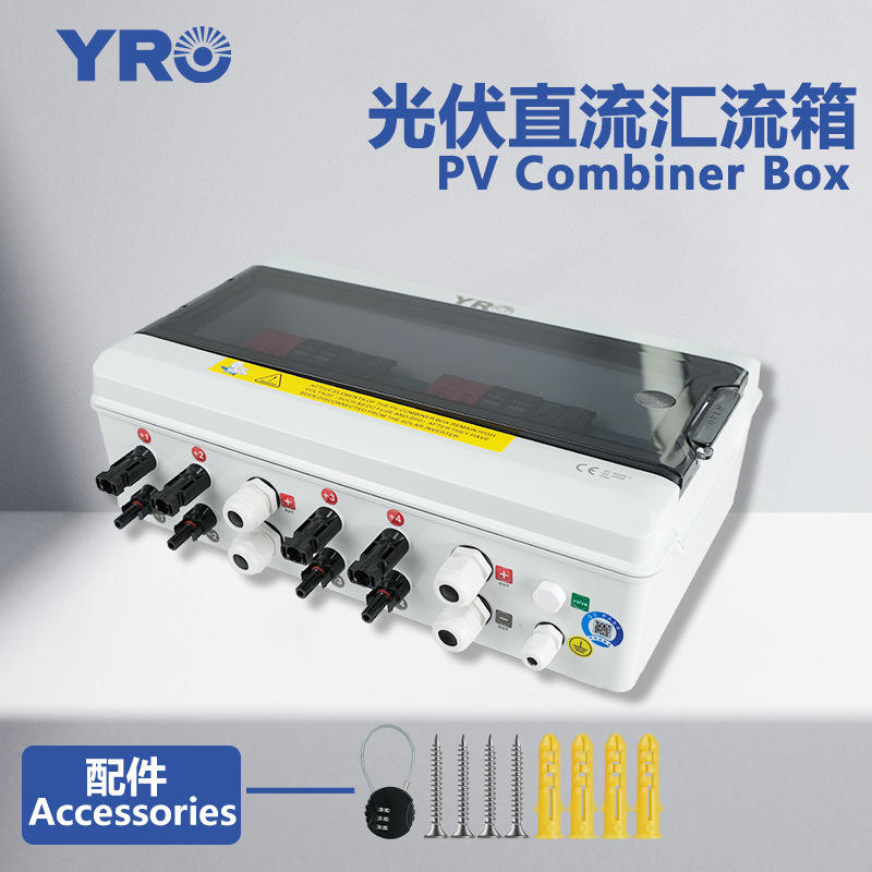 กล่องรวมสายไฟฟ้าโซลาร์เซลล์ YRO 4 ช่องอินพุต 2 ช่องเอาต์พุต 550V DC พร้อมฟิวส์ป้องกันฟ้าผ่า โมดูลกันน้ำ ติดผนัง