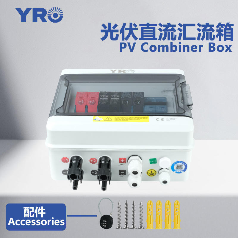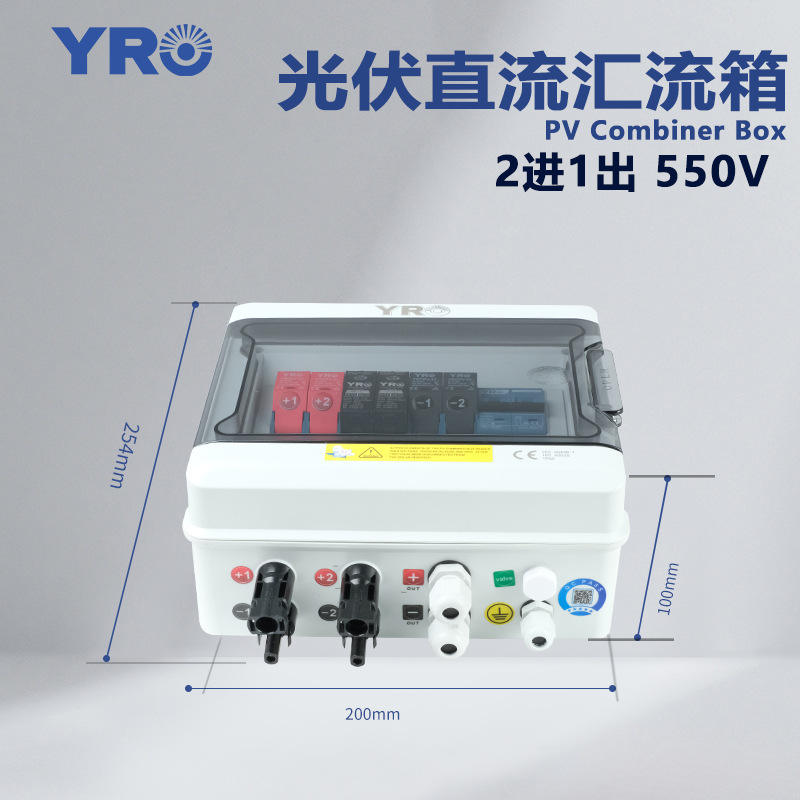 กล่องรวมสัญญาณไฟฟ้ากระแสตรงแบบโฟโตโวลตาอิก YRO 2 ช่องอินพุต 1 ช่องเอาต์พุต ป้องกันไฟกระชาก 550V ติดผนัง โครงพลาสติก