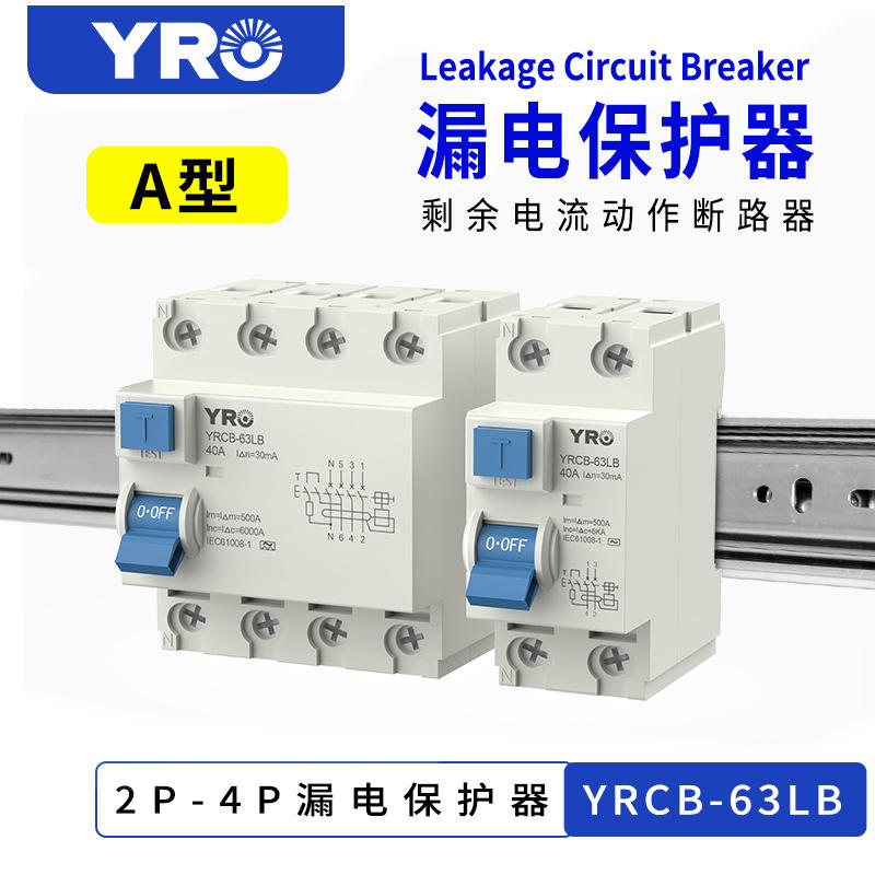 เบรกเกอร์ป้องกันไฟรั่ว YRO YRCB-63LB 40A ชนิด A 30mA แบบติดตั้งบนราง DIN