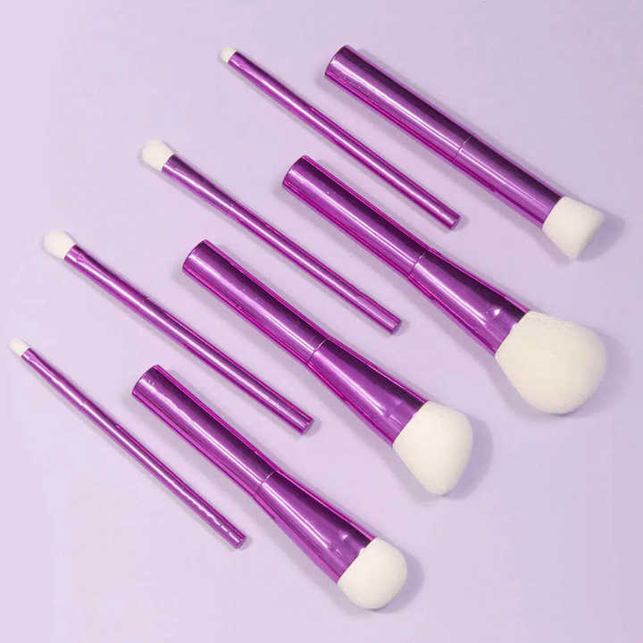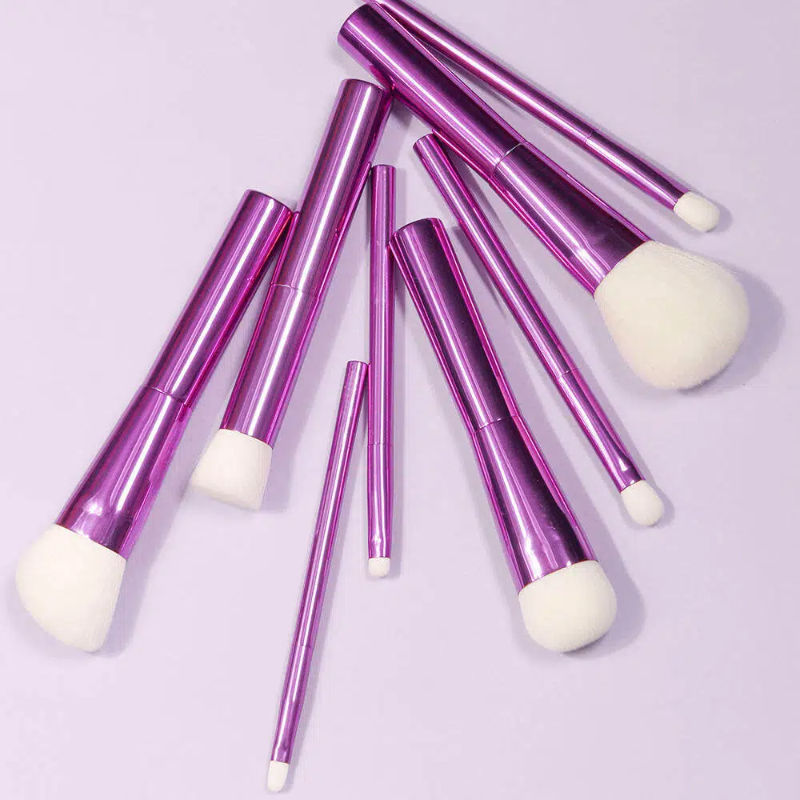 ชุดแปรงแต่งหน้า YRX 8 ชิ้น คุณภาพสูง ดีไซน์ใหม่ สีม่วงเคลือบเงา ขนแปรงสังเคราะห์ พรีเมียม สำหรับแต่งหน้า
