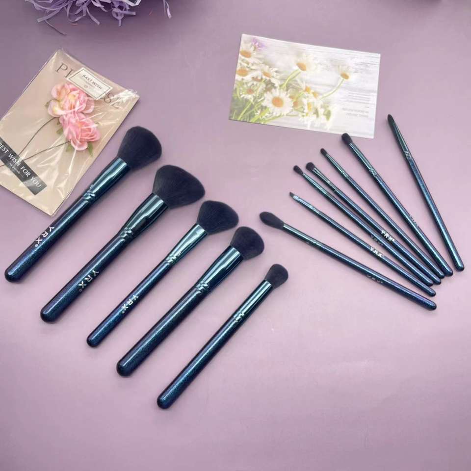 Yrx ชุดแปรงแต่งหน้าด้ามไม้12ชิ้นพร้อมอุปกรณ์แต่งหน้า
