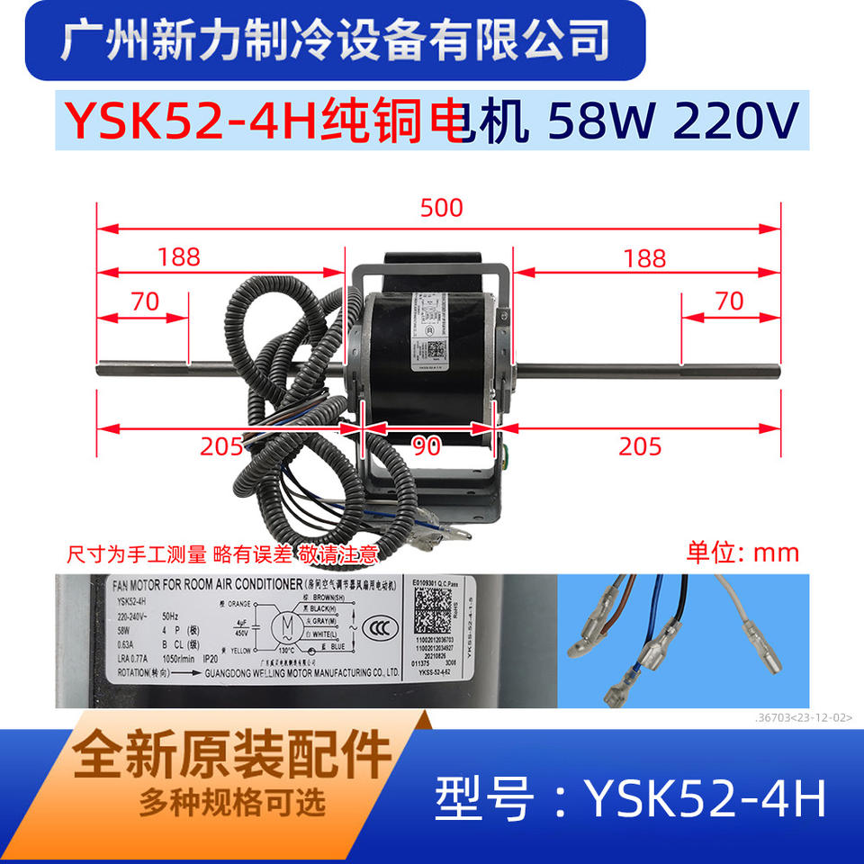 มอเตอร์แบบอะซิงโครนัสเฟสเดียว YSK52 4H มอเตอร์พัดลมแบบเพลาคู่ 62 รอบต่อนาที YKSS 52 4 62 หมายเลขชิ้นส่วน 11002012036703