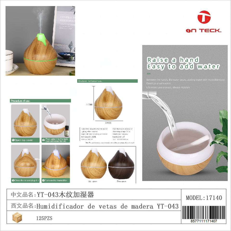 Yt-043 เครื่องเพิ่มความชื้นในอากาศลายไม้ 0.5 ลิตร เครื่องกระจายกลิ่นน้ำมันหอมระเหยแบบอัลตราโซนิก สำหรับใช้ในบ้าน ช่วยผ่อนคลาย วางบนโต๊ะ ใช้พลังงานจาก USB ควบคุมด้วยระบบสัมผัส พร้อมไฟกลางคืน