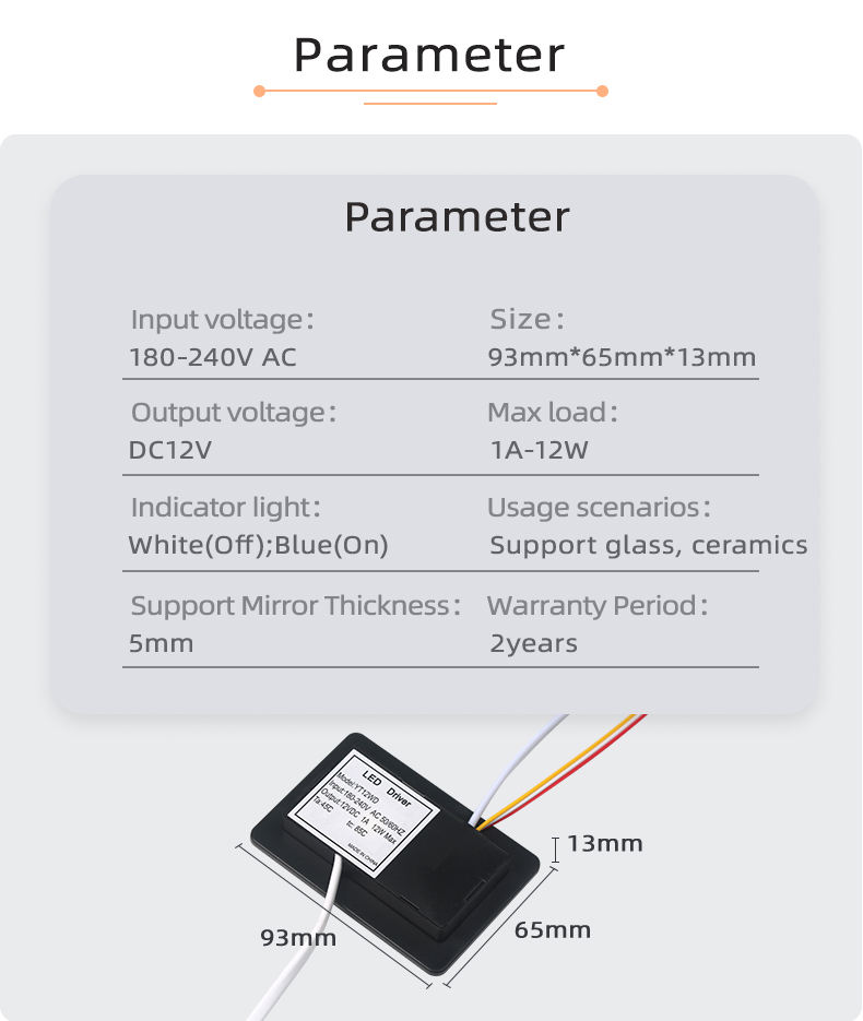 YT12WD สองสี1A DC12V 12W ลดแสงด้วยมือเซ็นเซอร์ตรวจจับคลื่นด้วยมือสวิตช์เซ็นเซอร์อินฟราเรดเคลื่อนไหวสำหรับกระจก LED
