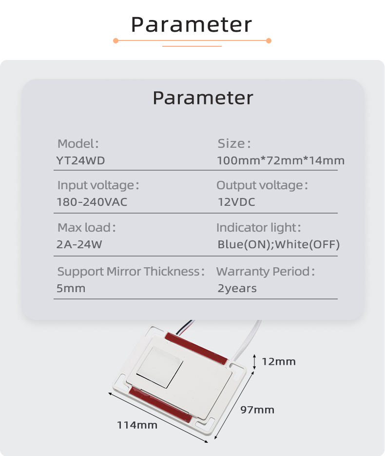 ชื่อผลิตภัณฑ์:สวิตช์กระจกสัมผัสปุ่มเดียว
