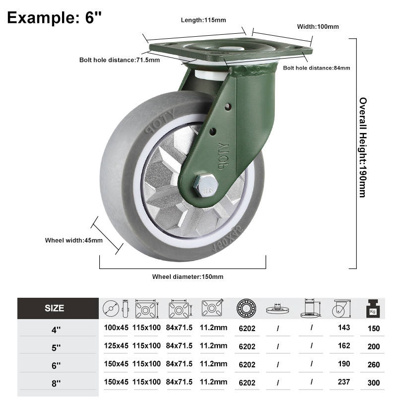 เส้นผ่าศูนย์กลางล้อ:100/125/150/200มม.
