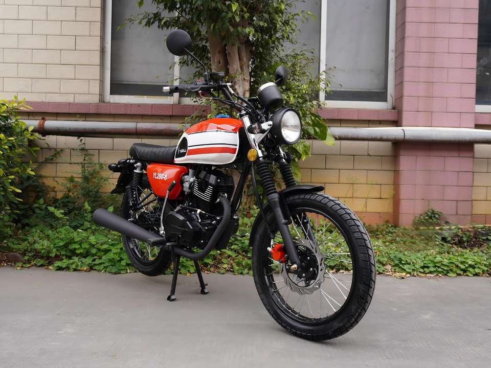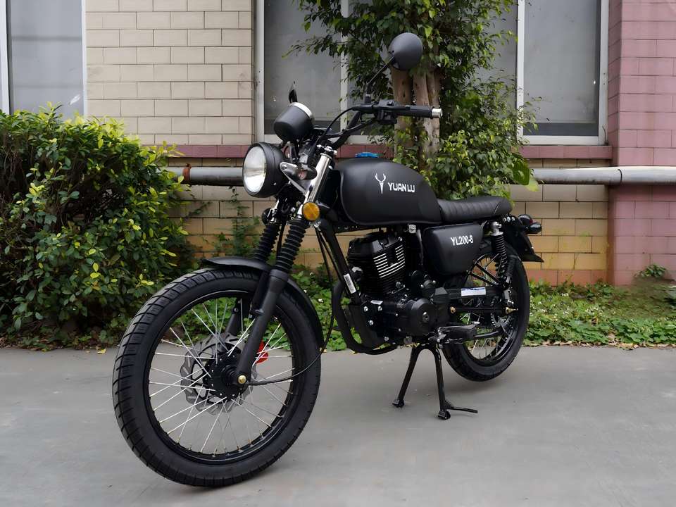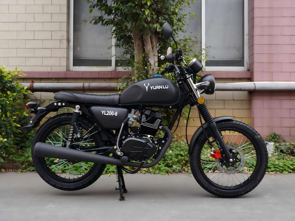 รถจักรยานยนต์ยี่ห้อ YUANLU รุ่น YL200 Retro ความจุ 200 ซีซี คุณภาพสูง พร้อมระบบเกียร์ 5 สปีด ขับเคลื่อนด้วยโซ่ ระบบจุดระเบิดแบบ C.D.I. ความเร็วสูงสุด 80 กม./ชม.